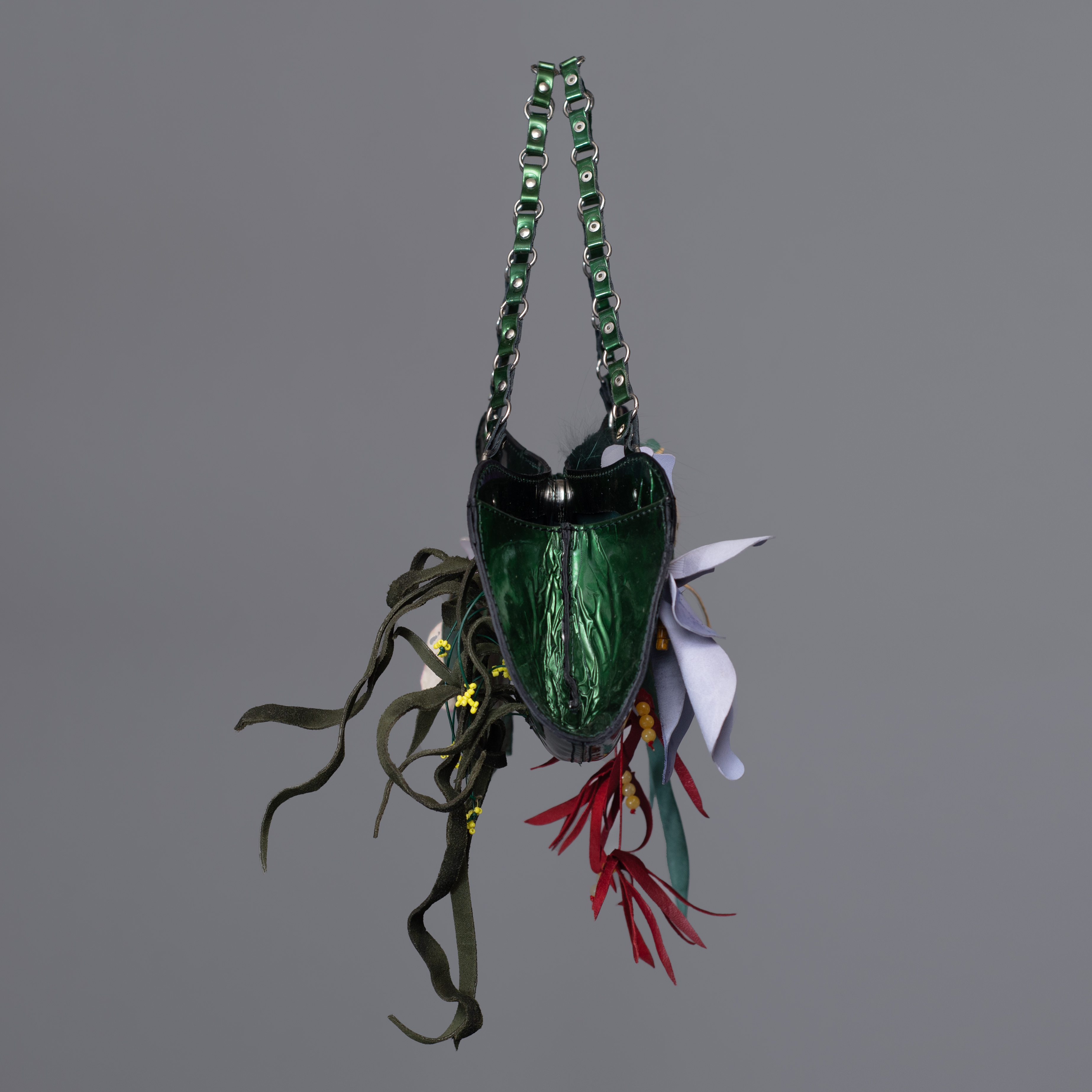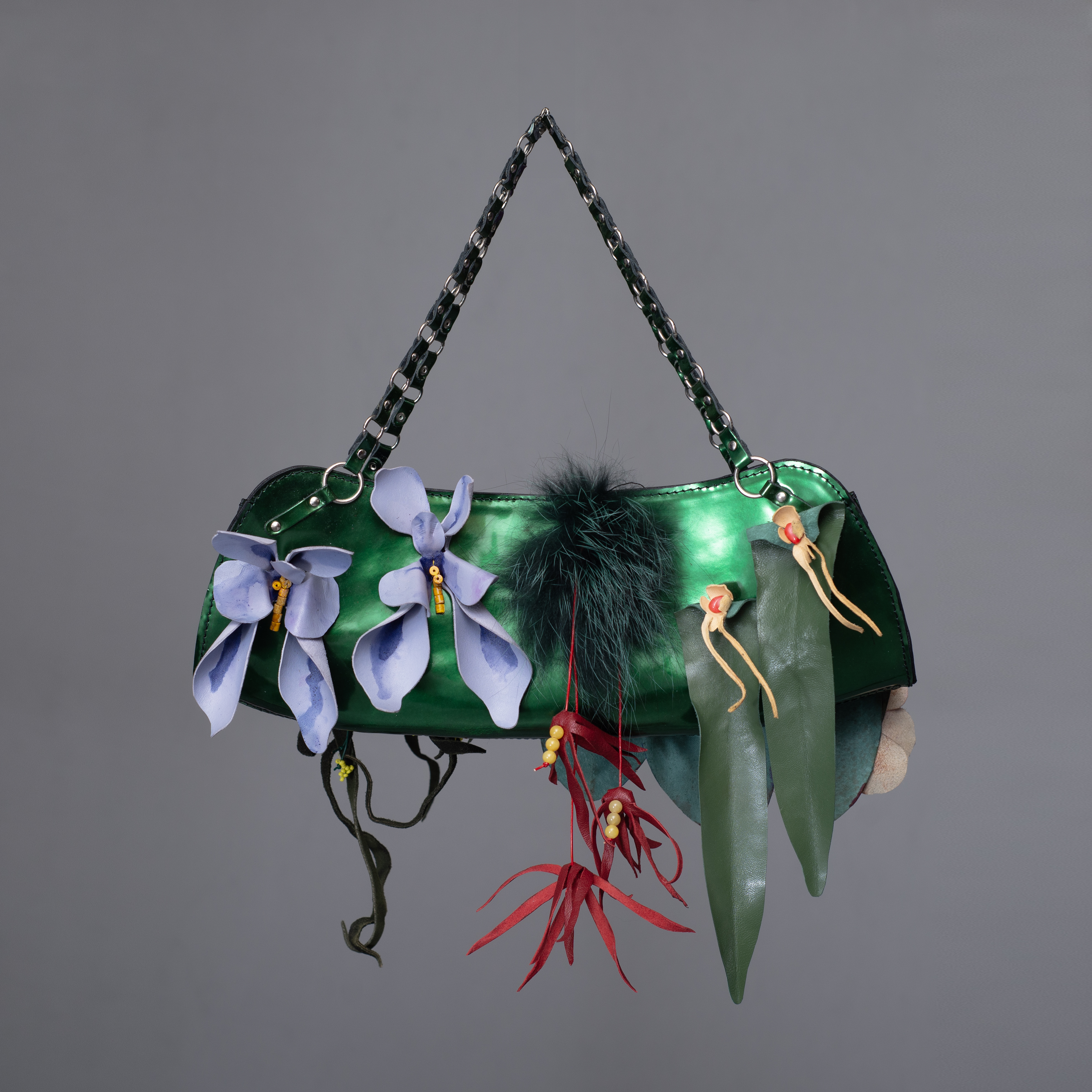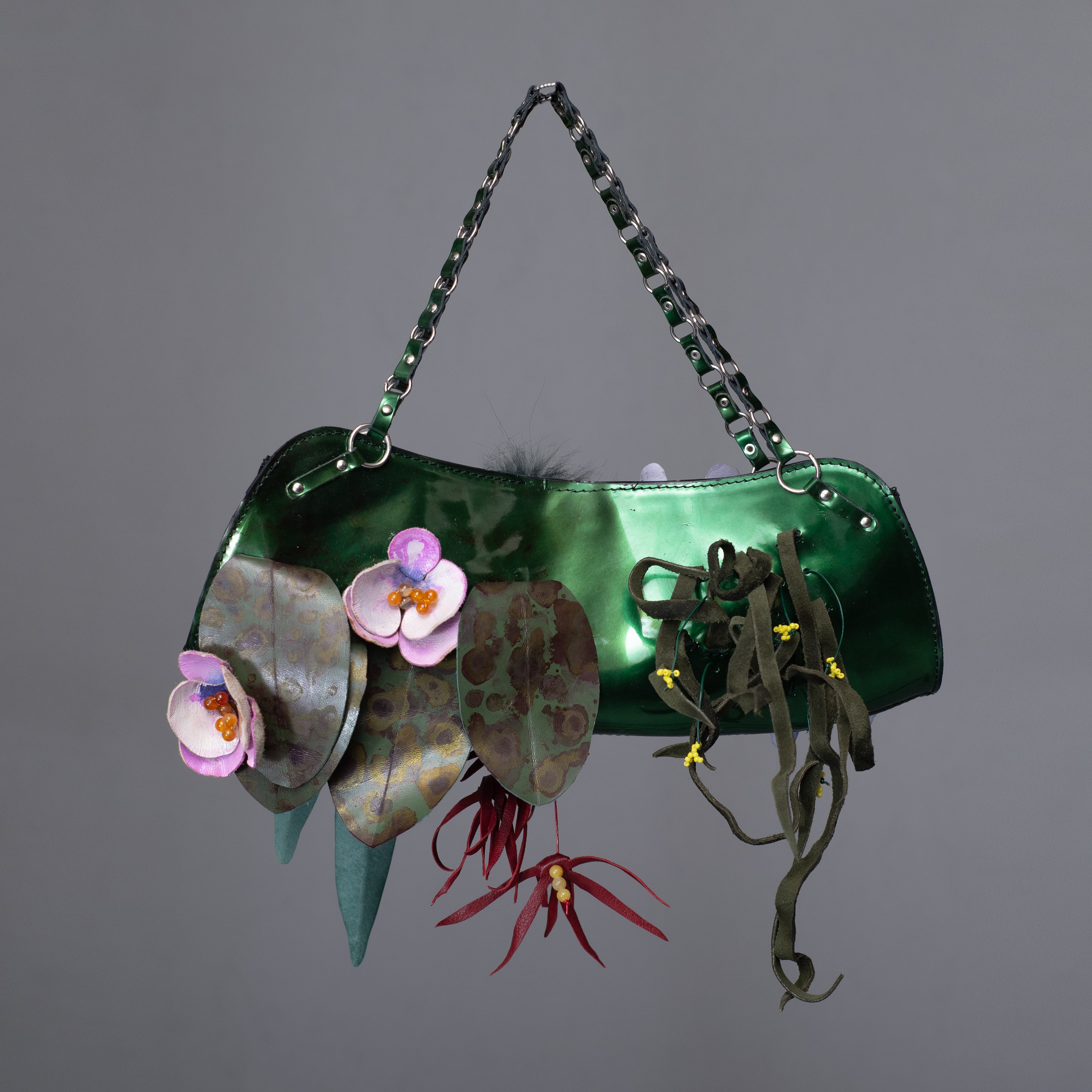 ‘Orquídario‘ bag nace de este impulso: un objeto que florece como un ecosistema portátil, lleno de vida y texturas, guardando dentro lo esencial.