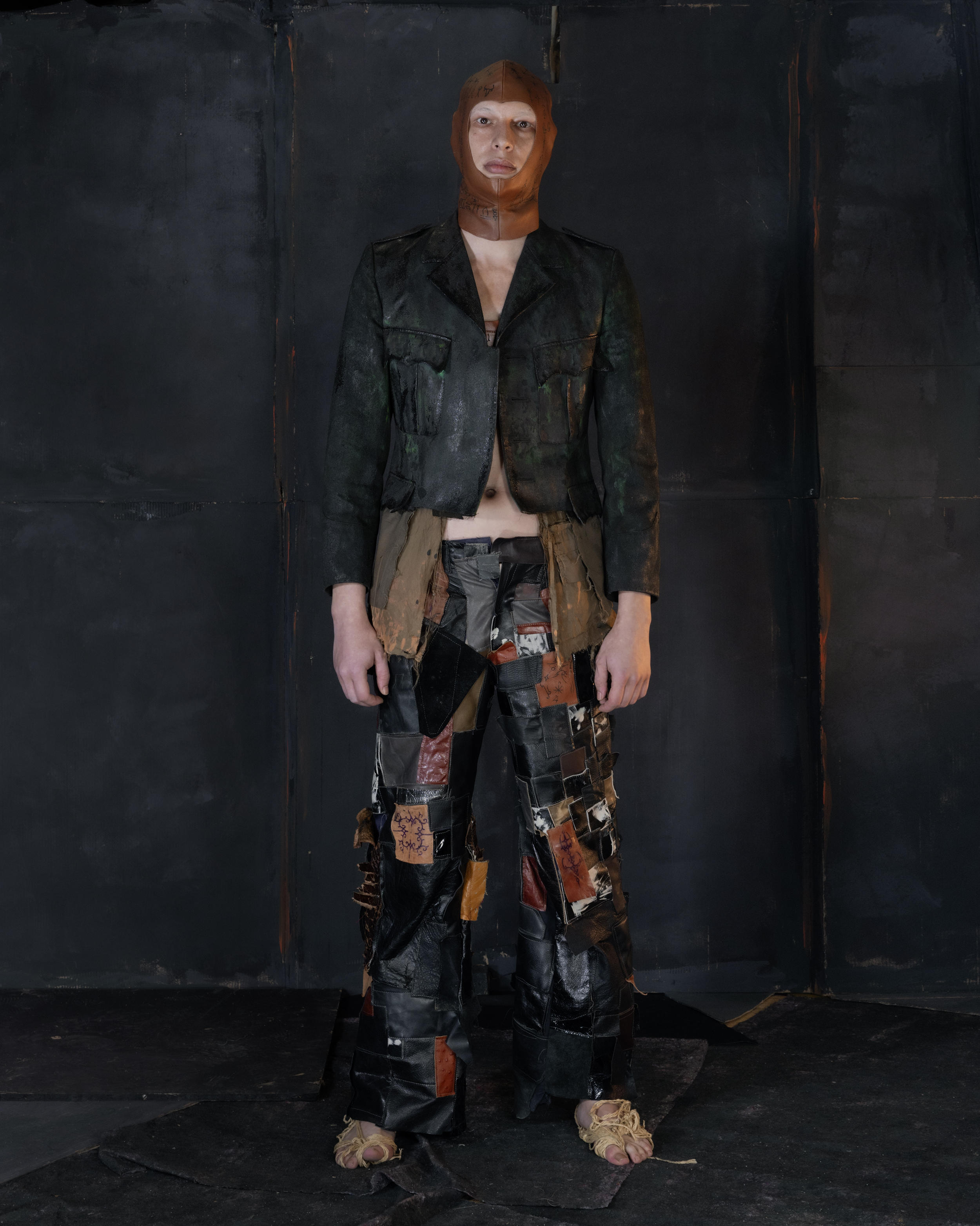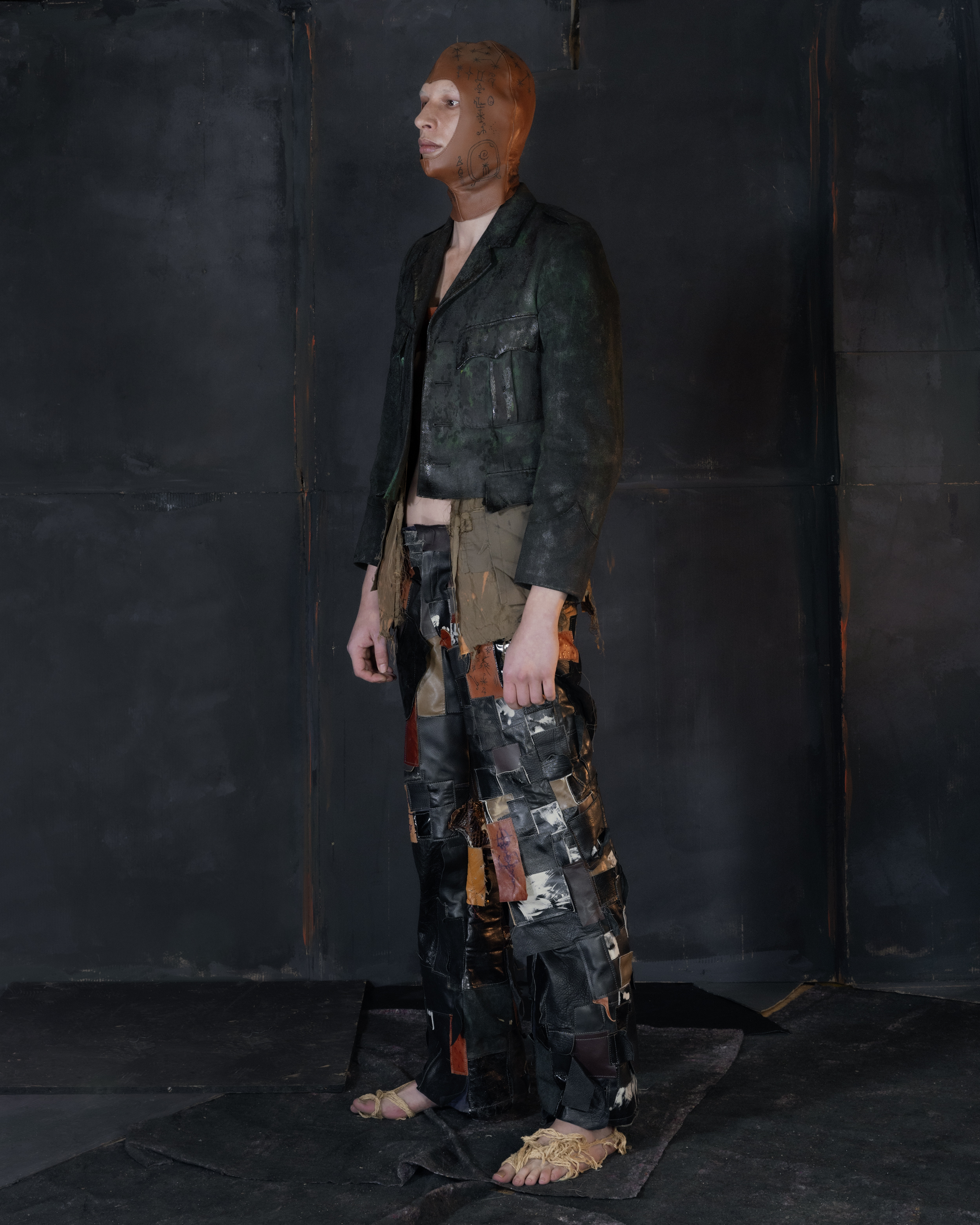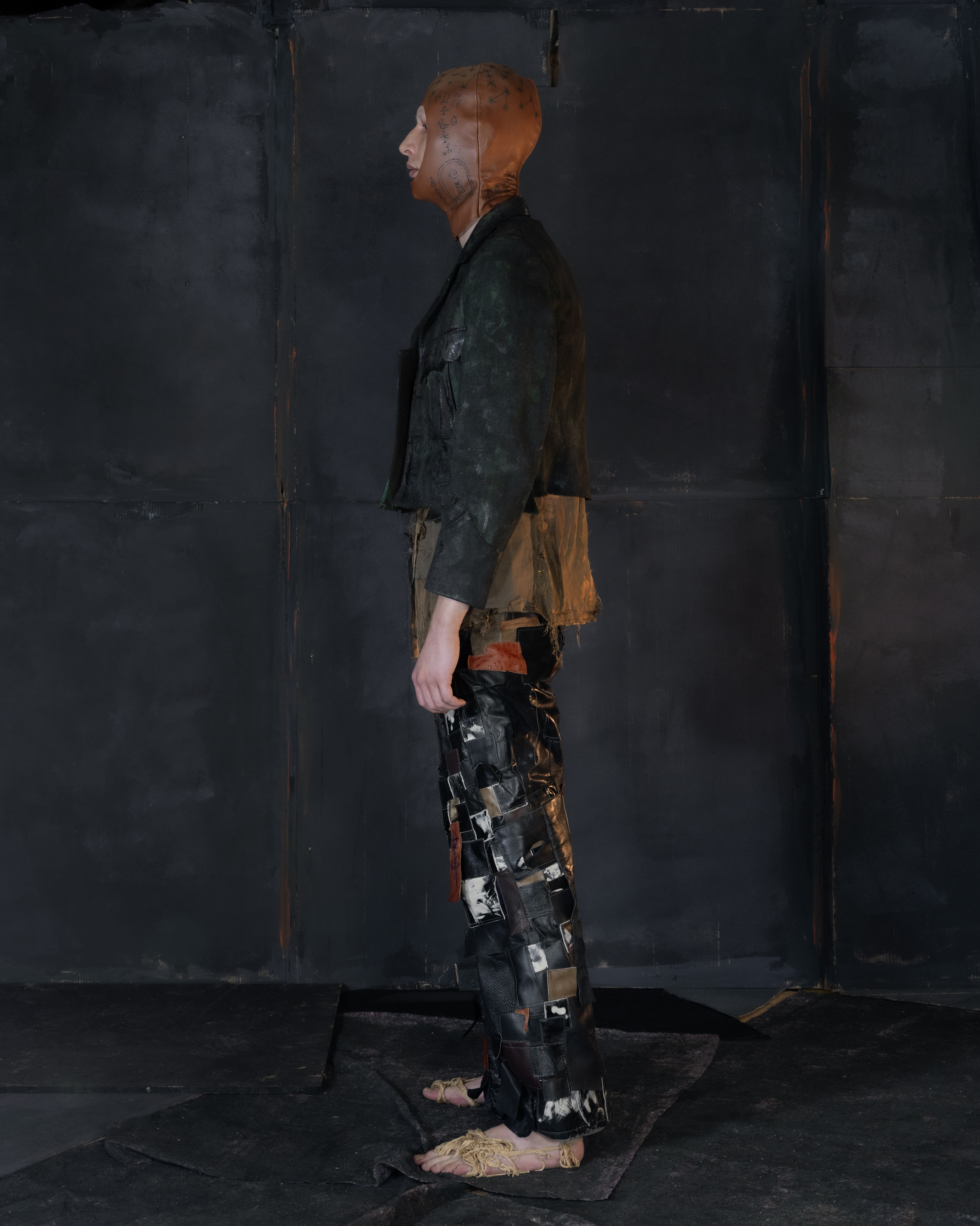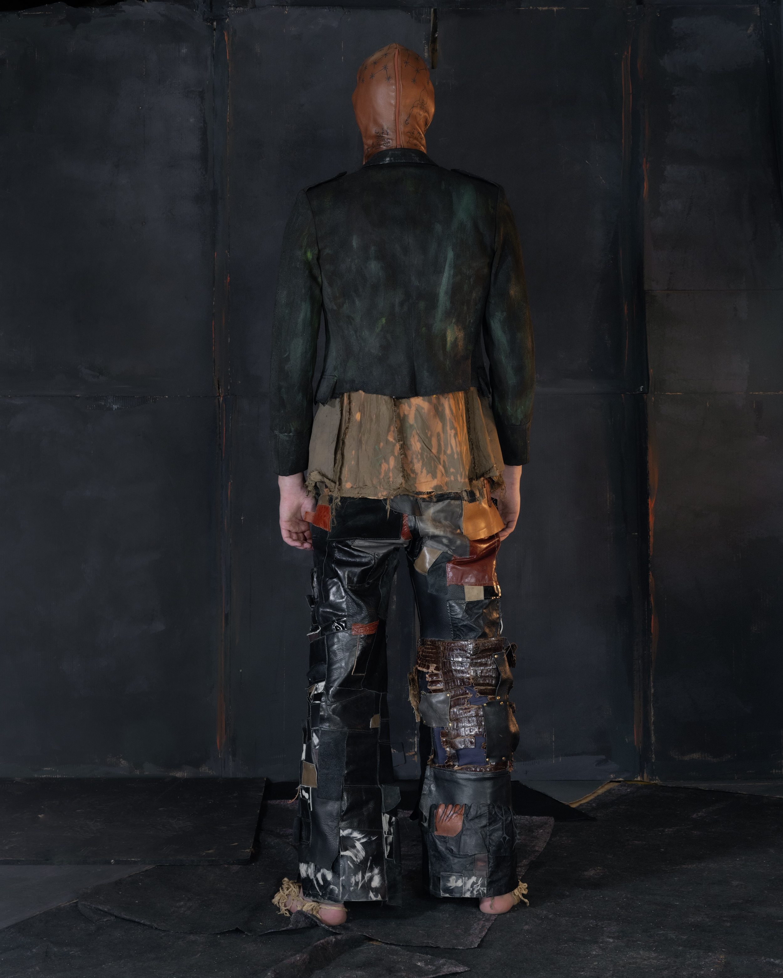 Cada detalle ha sido cortado y teñido a mano, generando matices irrepetibles en cada ornamento. El material, vivo por naturaleza, puede transformarse con el tiempo: aparecerán marcas, cambios de tono o texturas que evolucionan como parte de su propia biografía. Estas variaciones no son defectos, sino la huella de un proceso artesanal que continúa más allá de nuestro taller.