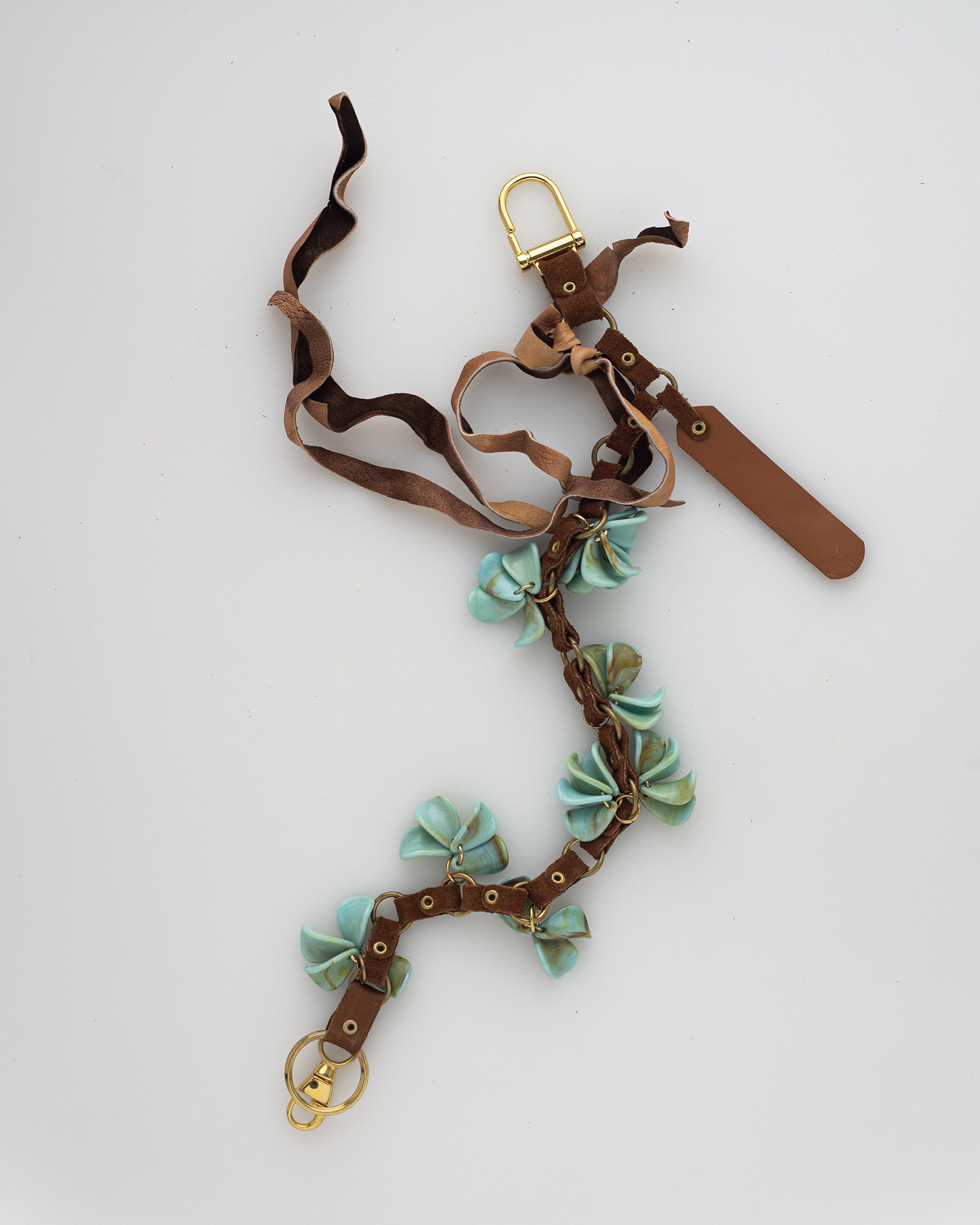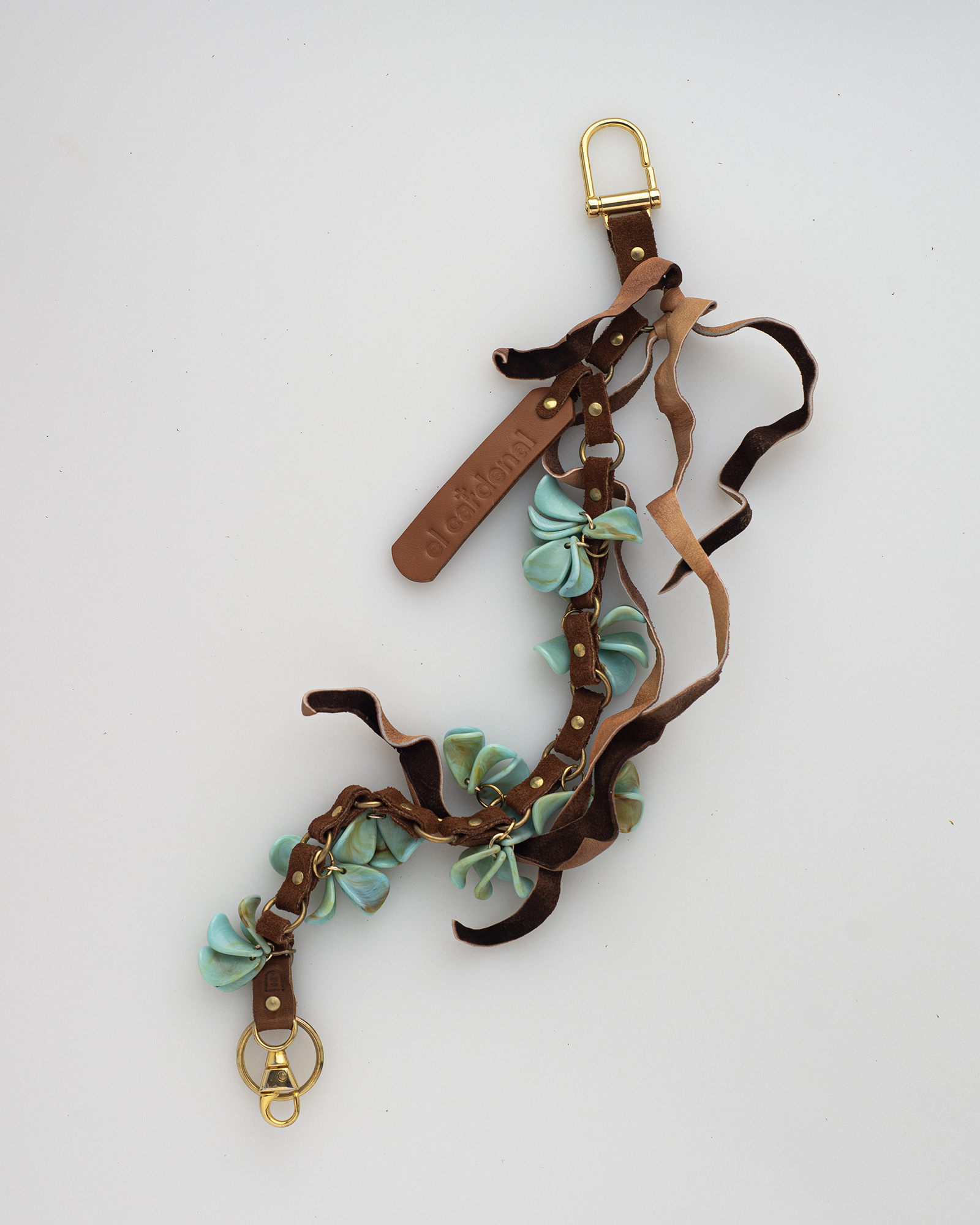Esta técnica crea cadenas estéticas y con gran resistencia y durabilidad. Puede ser personalizado eligiendo el color de las piezas de piel y el de los herrajes, que pueden ser dorados o plateados.