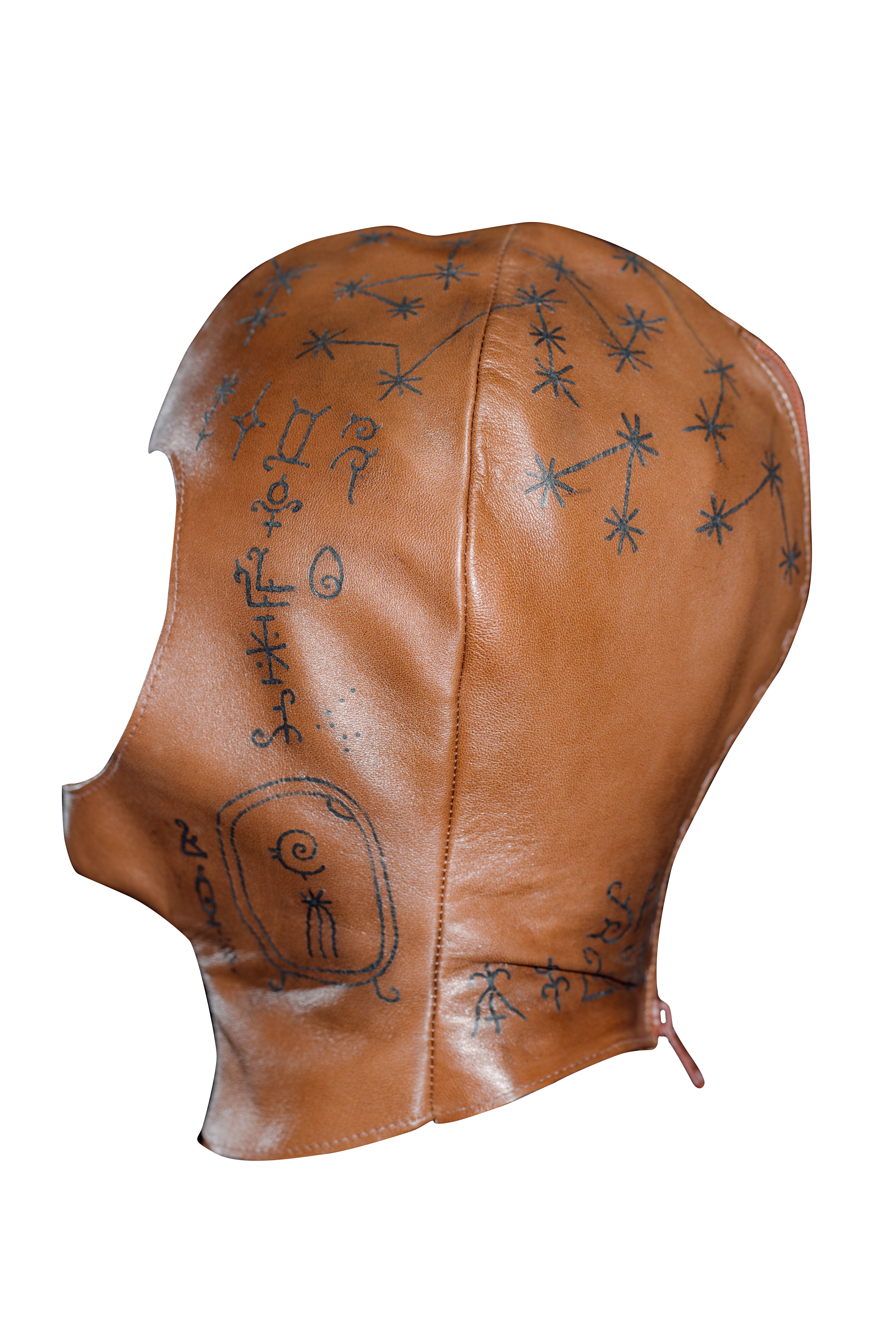 A pendant where a single golden ring is held within a piece of blue leather, suspended from a raw leather cord. Simple and symbolic.