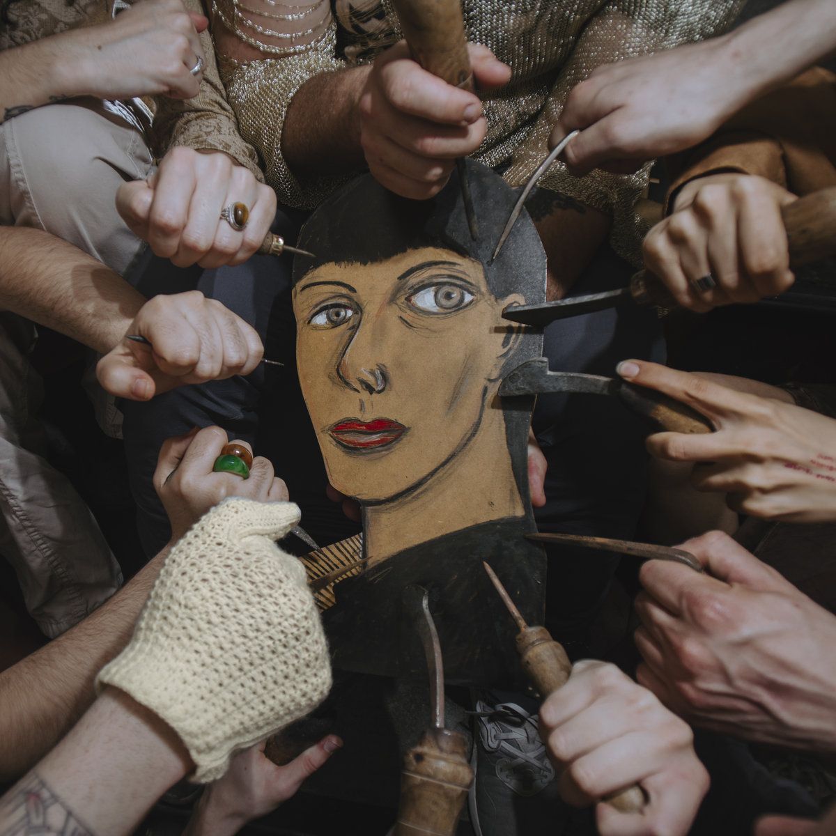 Las tres portadas trazan un mismo mito en tres actos: primero, la aparición de un rostro oscuro y casi oracular (Virtudes); después, la irrupción de la amenaza, el filo y la punzada (Se Clavan); finalmente, el tránsito hacia lo colectivo, donde ese mismo rostro es cargado, abrazado, procesionado (Remedios). No son escenas aisladas, sino un continuo: del silencio a la herida, de la herida a la comunión.